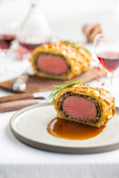 mals rundvlees in bladerdeeg en garnituur (per 4 pers.)