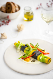 gevuld met gegrilde groenten, pommodori saus en Parmezaanse saus